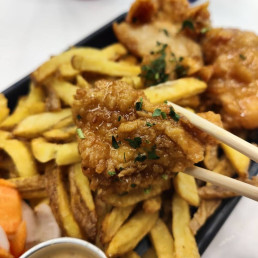 If you're a beef lover, the LONG DALLE Beef Bacon Triple steak is a must-have. This savory treat features the same delicious toppings as the chicken version, all served with crispy fries and a refreshing 33cl drink.